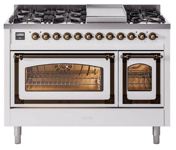 Introducing the new Nostalgie II 48" dual fuel range, a classic addition with a touch of innovation to any kitchen. This range feature sealed burners equipped with total black brass burner that has a non-stick nanotechnological coating, heavy cast iron grates, 3.5 + 1.52 cu. ft. total double oven capacity and soft closing door system.Read More